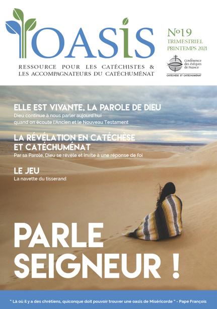 La place de la Parole de Dieu en catéchèse est centrale. De nombreux textes récents du Magistère ne cessent de nous rappeler la centralité de l’Ecriture Sainte dans toute action pastorale. Ce numéro de L’Oasis voudrait permettre aux catéchistes et aux accompagnateurs du catéchuménat, de comprendre ce que l’Église affirme quand elle dit que « Dieu parle » hier comme aujourd’hui. Il s’agit d’éclairer le mystère de la Révélation, de (re)découvrir personnellement et en communauté la place de la Parole de Dieu nourriture quotidienne pour les disciples, afin de revisiter les pratiques catéchétiques.